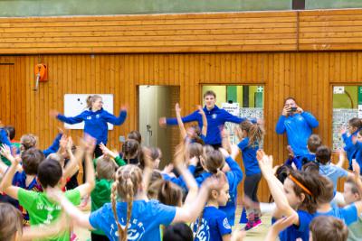 Souverän und kindgerecht führte die ehemalige Athletin der LG Peiner Land und mittlerweile zweite Vorsitzende des Leichtathletik-Kreises Peine Elisabeth Vetter die SportlerInnen und Zuschauer durch die Veranstaltung. Los ging es mit dem Aufwärmen durch Top-Sprinter Mattes Ahrens und der Social Media-Verantwortlichen Martha Fahrenkrug. Vetter heizte die Zuschauer dann in der Umbaupause an, als Ahrens sein Sprintkönnen zum Besten gab und gegen mutige und motivierte Kinder rannte. Gefolgt von einer Fragerunde mit anschließender Autogrammstunde konnten die Kinder einen guten Einblick gewinnen, in welche Richtung man sich innerhalb der Leichtathletik entwickeln kann.
