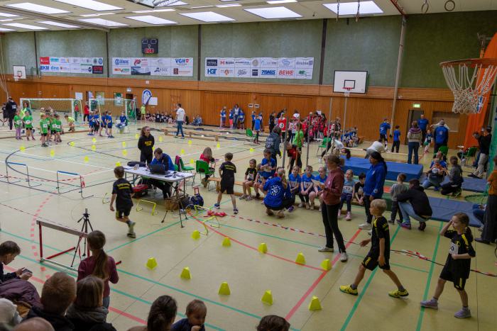 Eine Sache steht bei den Zwergenspielen im Vordergrund: Der Spaß an der Bewegung. Um Punkte und Platzierungen geht es natürlich trotzdem, aber immer mit dem Fokus auf die Mannschaft und nicht auf die Leistungen einzelner Kinder. Absolviert werden mussten insgesamt fünf Stationen. Außerdem konnten die Kinder an der Pausenstation erste Erfahrungen mit dem Stabhochsprung sammeln. An den Stationen ging es darum, immer im Vergleich zu allen anderen Mannschaften, die meisten Punkte oder schnellsten Zeiten zu erzielen.
