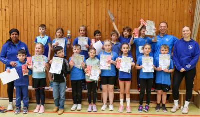 Bevor es zur abschließenden Siegerehrung kam, löste Vetter noch die Schätzfrage des Tages auf: Wie lang waren die drei aneinander gerollten Sprungseile? Bei Schätzungen zwischen 50 cm und 200m lagen die Werte weit auseinander. Doch im Stechen (5 Kinder hatten 9m geschätzt) konnte schlussendlich der beste Wert ermittelt werden.